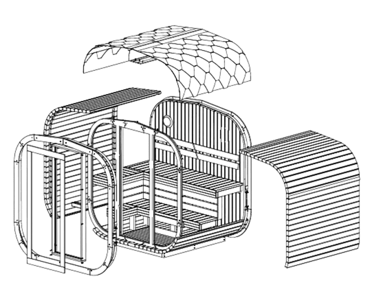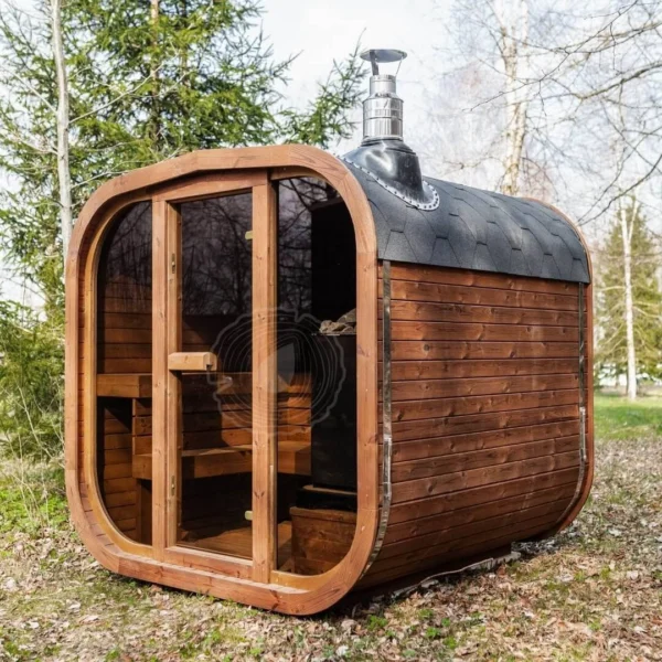 Aura Sauna, isteğe özel tam ahşap çatı.